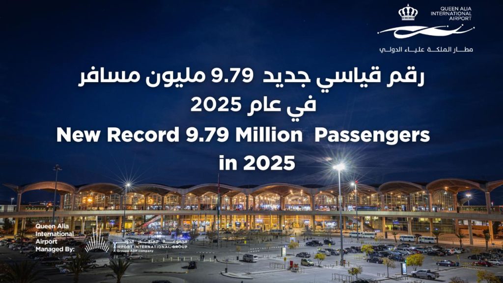 مجموعة المطار الدولي تعلن عن عام قياسي مع استقبال مطار الملكة علياء الدولي 9.79 مليون مسافر في عام 2025